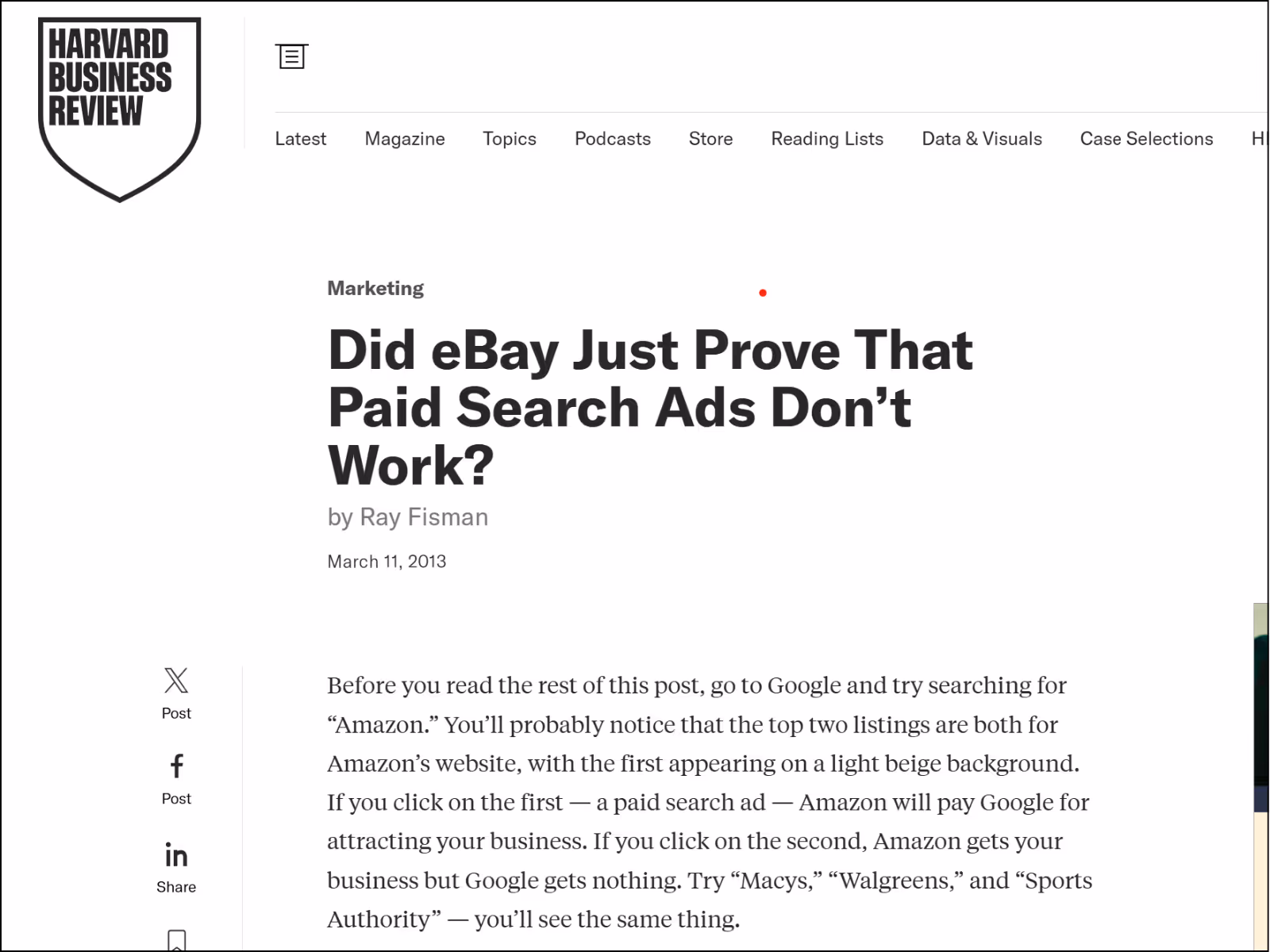 En d'autres termes, eBay payait Google pour apparaître au-dessus de son propre résultat organique. Les utilisateurs qui cherchaient "eBay" allaient sur eBay, que le lien soit payant ou gratuit. Le milliard de dollars de dépenses annuelles n'avait aucun effet incrémental.