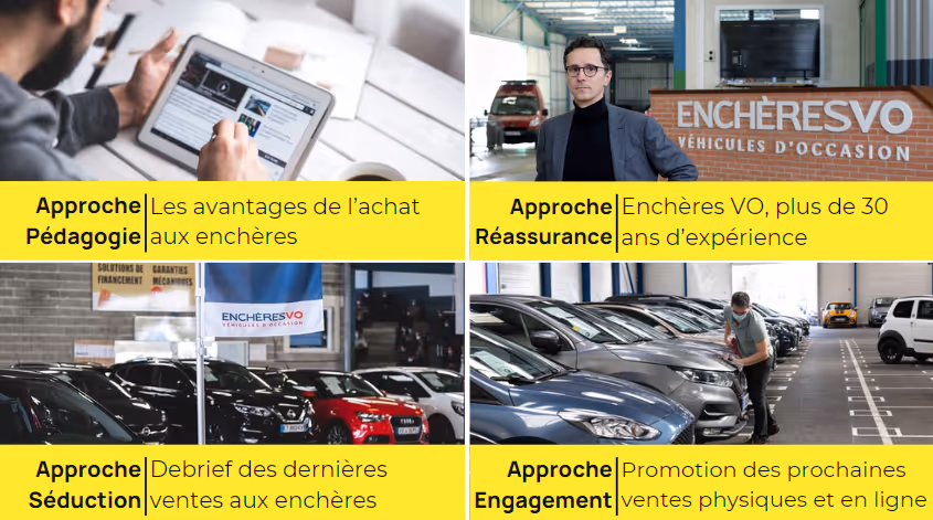 En 2023, Enchères VO vit une véritable révolution et un changement d’échelle avec la digitalisation de son process de vente. Depuis 30 ans, 100% des ventes se font de façon physique en salles de vente. Désormais, tout le monde peut participer et enchérir en direct depuis leur site web. Cette évolution change la donne au niveau des publics visés. Enchères VO s’adressait avant tout à des fins connaisseurs du marché auto. L’enjeu est maintenant de développer son audience auprès de tous les particuliers en recherche d’un véhicule d’occasion.